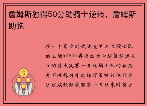 在一个寒冷的夜晚,克里夫兰骑士队的主场arena再次成为全球篮球迷关注的焦点。比赛一开始,骑士队的状态并不理想,对手的防守策略让他们在进攻端频频受阻。第一节结束时,骑士队落后15分,这让全场的球迷们感...