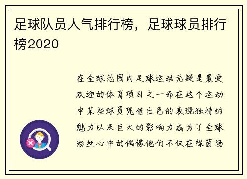 • 足球队员人气排行榜,足球球员排行榜2020