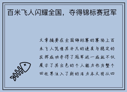 • 百米飞人闪耀全国,夺得锦标赛冠军